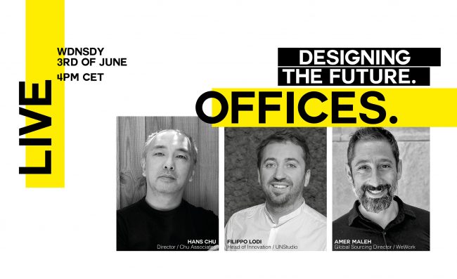 Offices Join online for a live group discussion about the future of our work environments. From the design of our workspaces to humanizing the offices, integration of technology, choreographing movement to health strategies and more. How will we design our future offices?